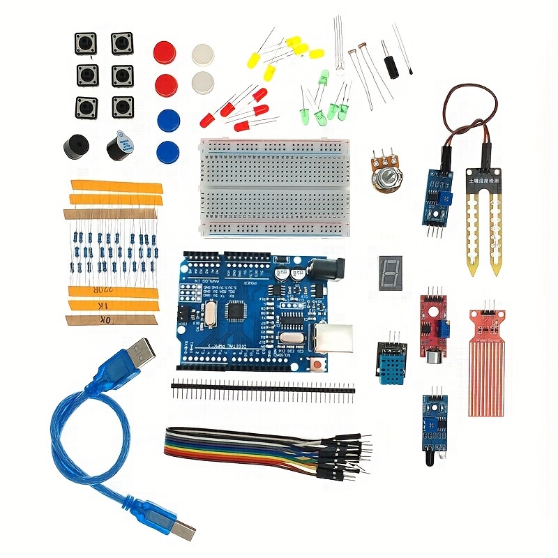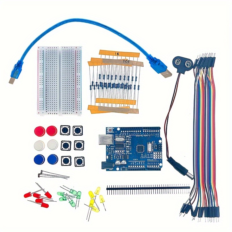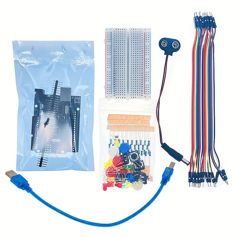 Arduino UNO R3 Mini Breadboard Kit with LED Jumper Wires, Buttons, 400-Hole Breadboard , ,